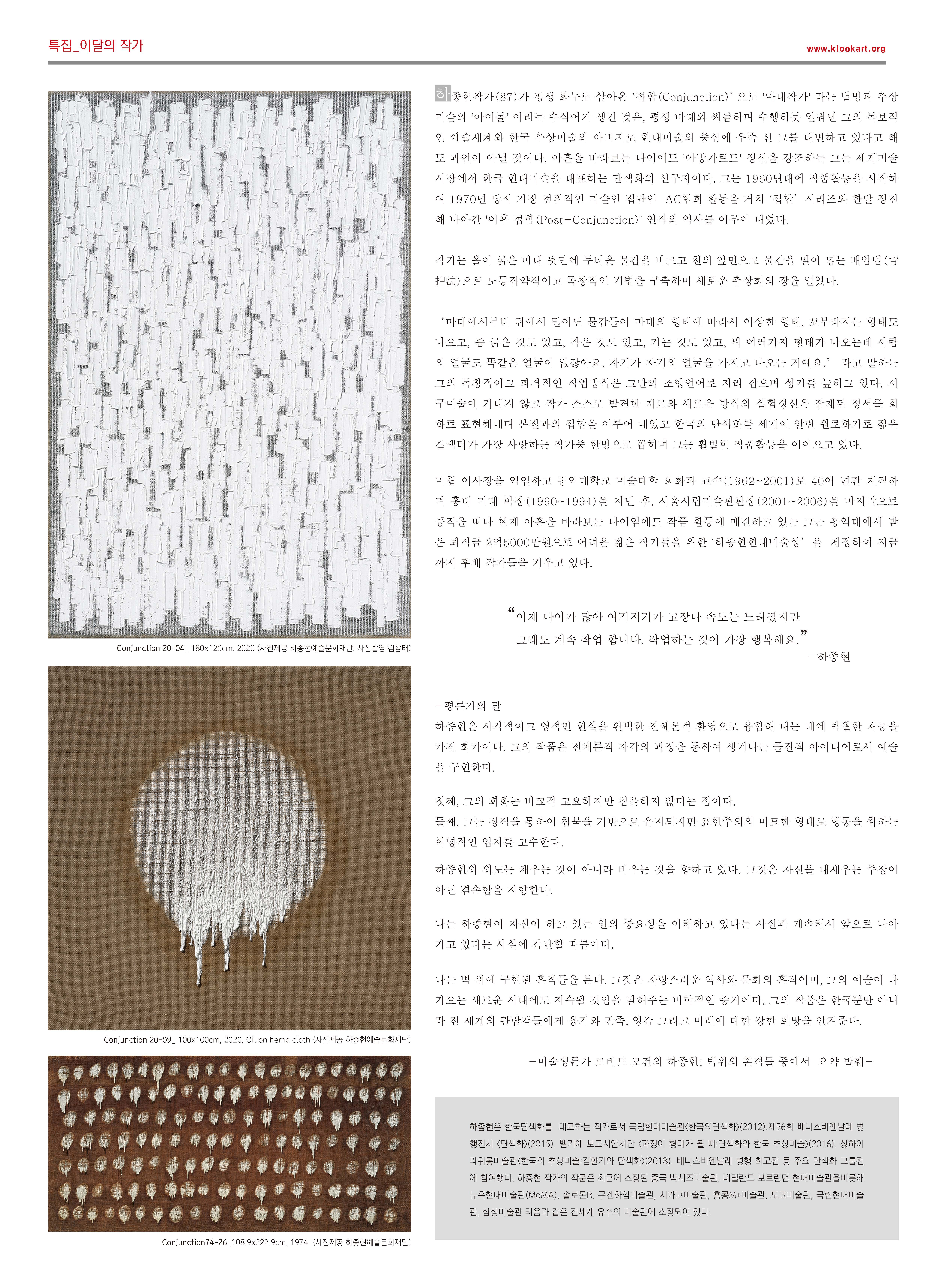 단색화가 하종현작가의 작업세계를 특집으로 전해드립니다.